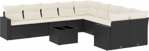 vidaXL 11-częściowy zestaw wypoczynkowy do ogrodu, poduszki czarny rattan PE