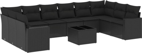 vidaXL 11-częściowy zestaw wypoczynkowy do ogrodu, poduszki czarny rattan PE