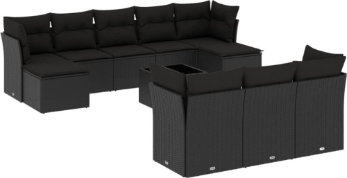 vidaXL 11-częściowy zestaw wypoczynkowy do ogrodu, poduszki czarny rattan PE