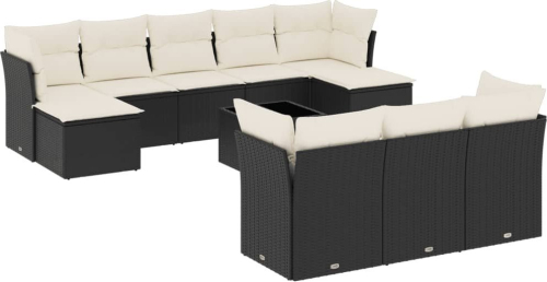 vidaXL 11-częściowy zestaw wypoczynkowy do ogrodu, poduszki czarny rattan PE