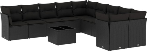 vidaXL 11-częściowy zestaw wypoczynkowy do ogrodu, poduszki czarny rattan PE