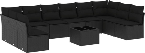 vidaXL 11-częściowy zestaw wypoczynkowy do ogrodu, poduszki czarny rattan PE
