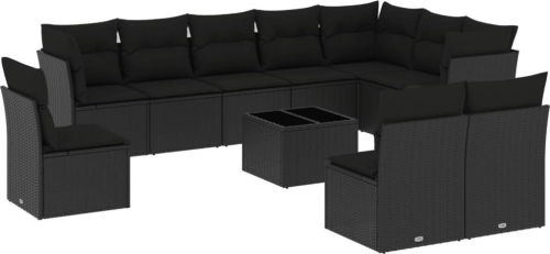 vidaXL 11-częściowy zestaw wypoczynkowy do ogrodu, poduszki czarny rattan PE