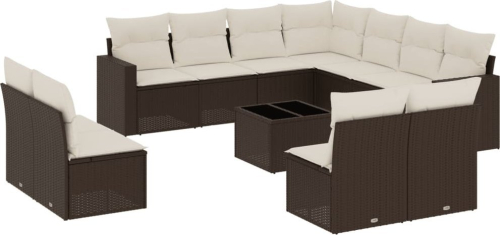 vidaXL 12-cz. zestaw mebli do ogrodu, z poduszkami brązowe polirattan