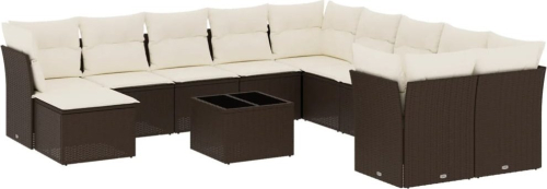 vidaXL 12-cz. zestaw mebli do ogrodu, z poduszkami brązowe polirattan