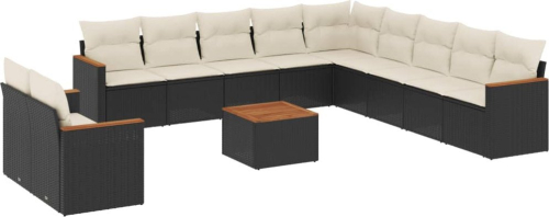 vidaXL 12-cz. zestaw mebli do ogrodu, z poduszkami, czarny, polirattan