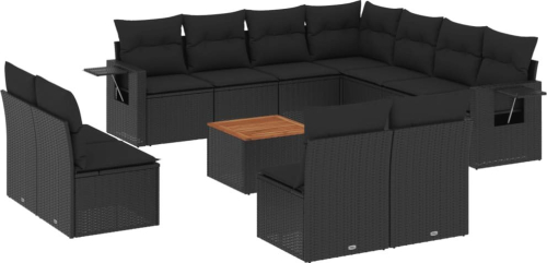 vidaXL 12-cz. zestaw mebli do ogrodu, z poduszkami, czarny, polirattan