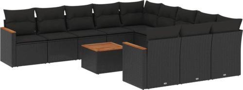 vidaXL 12-cz. zestaw mebli do ogrodu, z poduszkami, czarny, polirattan