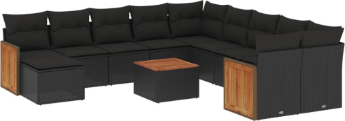 vidaXL 12-cz. zestaw mebli do ogrodu, z poduszkami, czarny, polirattan