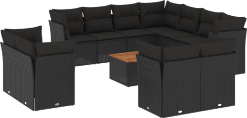 vidaXL 12-cz. zestaw mebli do ogrodu, z poduszkami, czarny, polirattan