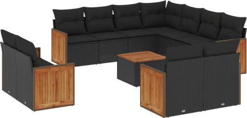 vidaXL 12-cz. zestaw mebli do ogrodu, z poduszkami, czarny, polirattan