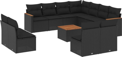 vidaXL 12-cz. zestaw mebli do ogrodu, z poduszkami, czarny, polirattan