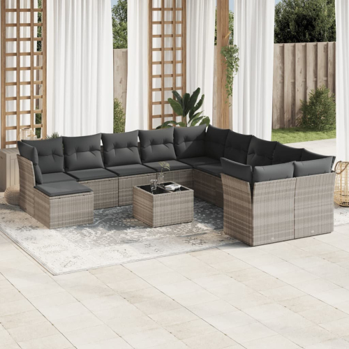 vidaXL 12-cz. zestaw mebli ogrodowych, z poduszkami, jasnoszary