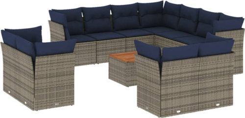 Vidaxl 12-cz. zestaw mebli ogrodowych z poduszkami, szary, polirattan