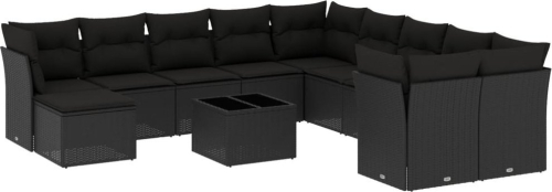 vidaXL 12-częściowy zestaw mebli do ogrodu, z poduszkami, czarny, polirattan
