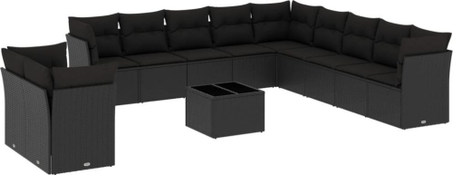 vidaXL 12-częściowy zestaw mebli do ogrodu, z poduszkami, czarny, polirattan