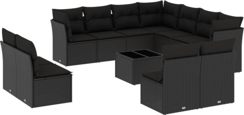 vidaXL 12-częściowy zestaw mebli do ogrodu, z poduszkami, czarny, polirattan