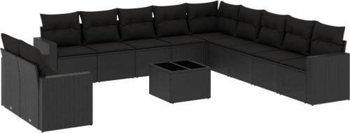 vidaXL 12-częściowy zestaw mebli do ogrodu, z poduszkami, czarny, polirattan