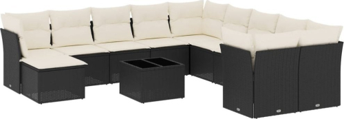 vidaXL 12-częściowy zestaw mebli do ogrodu, z poduszkami, czarny, polirattan