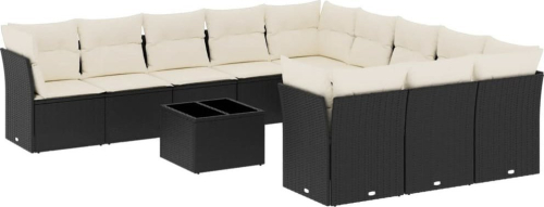 vidaXL 12-częściowy zestaw mebli do ogrodu, z poduszkami, czarny, polirattan