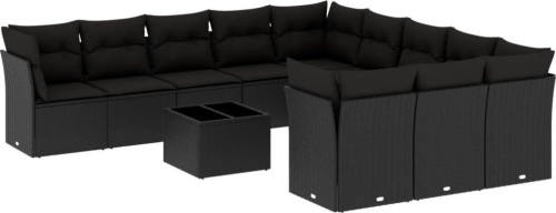vidaXL 12-częściowy zestaw mebli do ogrodu, z poduszkami, czarny, polirattan