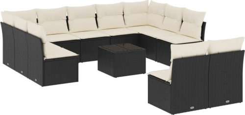 vidaXL 12-częściowy zestaw mebli do ogrodu, z poduszkami, czarny, polirattan