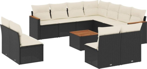 vidaXL 12-częściowy zestaw mebli do ogrodu, z poduszkami, czarny, polirattan