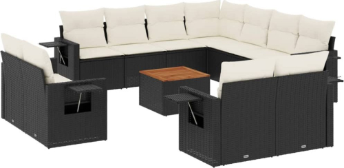 vidaXL 12-częściowy zestaw mebli do ogrodu, z poduszkami, czarny, polirattan