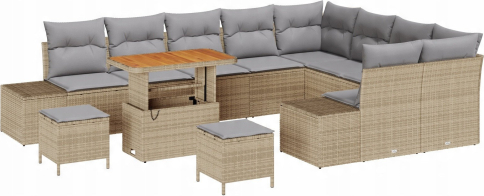 vidaXL 12-Częściowy Zestaw Sof Ogrodowych Z Poduszkami Beżowy Polirattan Akacja