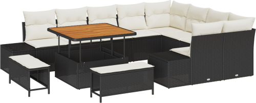 Vidaxl 12-Częściowy Zestaw Sof Ogrodowych z Poduszkami Czarny Polirattan Akacja