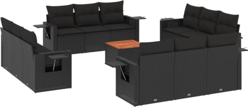 vidaXL 13-cz. zestaw mebli do ogrodu, poduszki, czarny, rattan PE