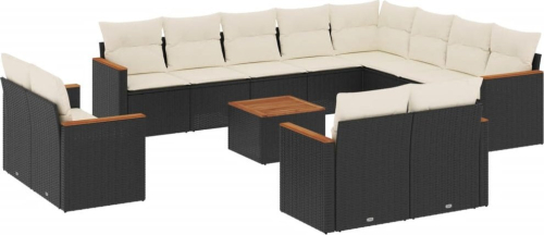 vidaXL 13-cz. zestaw mebli do ogrodu, poduszki, czarny, rattan PE