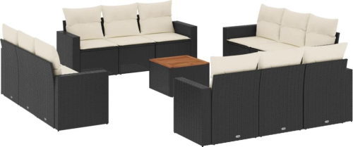 vidaXL 13-cz. zestaw mebli do ogrodu, poduszki, czarny, rattan PE