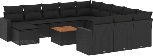 vidaXL 13-cz. zestaw mebli do ogrodu, poduszki, czarny, rattan PE