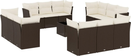 vidaXL 13-cz. zestaw mebli ogrodowych z poduszkami, brązowy polirattan