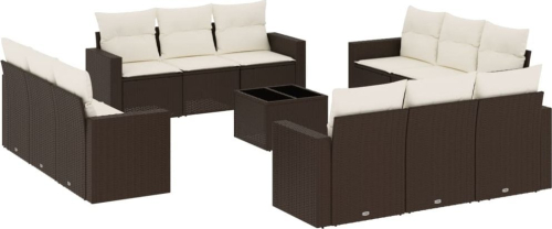 vidaXL 13-cz. zestaw mebli ogrodowych z poduszkami, brązowy polirattan