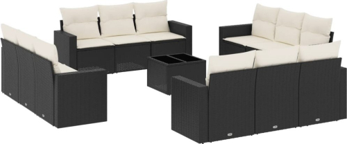 vidaXL 13-częściowy zestaw mebli do ogrodu, poduszki, czarny, rattan PE