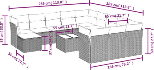vidaXL 13-częściowy zestaw mebli do ogrodu, poduszki, czarny, rattan PE