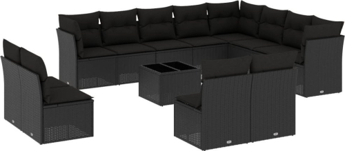 vidaXL 13-częściowy zestaw mebli do ogrodu, poduszki, czarny, rattan PE