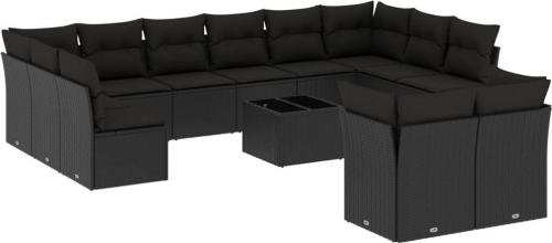 vidaXL 13-częściowy zestaw mebli do ogrodu, poduszki, czarny, rattan PE
