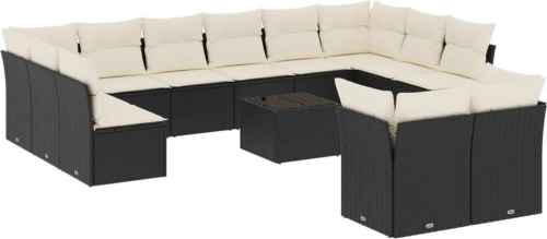 vidaXL 13-częściowy zestaw mebli do ogrodu, poduszki, czarny, rattan PE