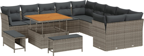 vidaXL 13-częściowy Zestaw Sof Ogrodowych z Poduszkami Szary Polirattan Akacja
