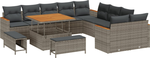 vidaXL 13-elementowy zestaw sofy ogrodowej z poduszkami szary polirattan akacja