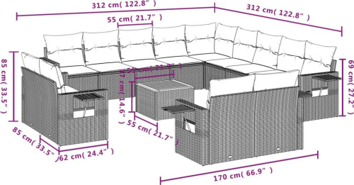 vidaXL 14-częsciowy zestaw wypoczynkowy do ogrodu, poduszki czarny rattan PE