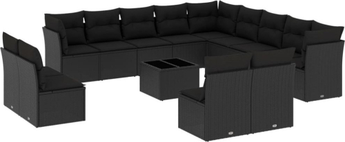 vidaXL 14-częściowy zestaw wypoczynkowy do ogrodu, poduszki czarny rattan PE