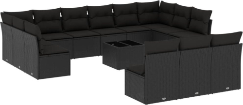 vidaXL 14-częściowy zestaw wypoczynkowy do ogrodu, poduszki czarny rattan PE