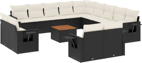 vidaXL 14-częściowy zestaw wypoczynkowy do ogrodu, poduszki czarny rattan PE