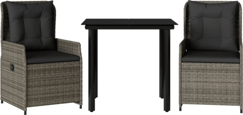vidaXL 3-cz. zestaw mebli ogrodowych z poduszkami, szary rattan PE