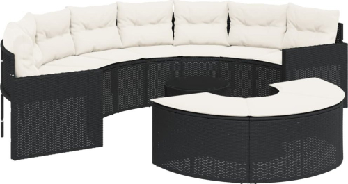 vidaXL 3-cz. zestaw mebli ogrodowych z półokrągłą sofą, czarny
