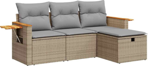 vidaXL 4-cz. zestaw mebli ogrodowych z poduszkami, beżowy, polirattan